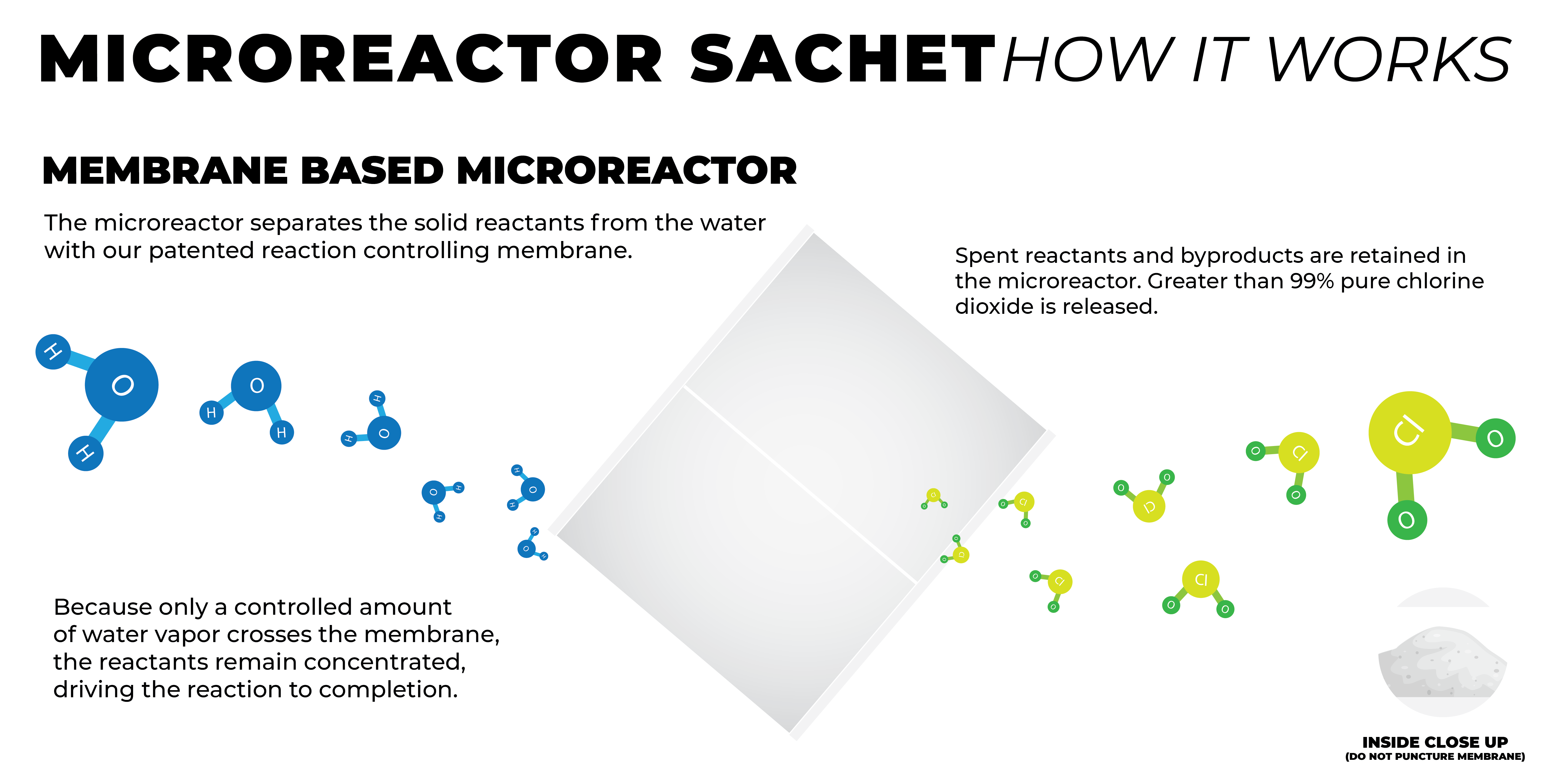 This technology is utilized to create three unique delivery systems for ultra-pure chlorine dioxide: